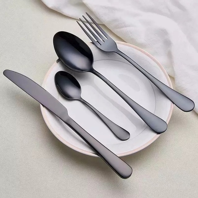 【即納】 カトラリー 4点セット カラー:ブラック(艶あり) ディナーナイフ ディナーフォーク ディナースプーン デザートスプーン カラー:ブラック 珍しいブラックのカトラリー。 このカトラリーを使うだけで、スタイリングがカッコ良く決まります。 テーブルコーディネートに合わせやすいお得な4点セットです。 ※写真よりも光沢のあるブラックです。マットではありません。 ※即納分は在庫に限りがございます。 売り切れの場合は取り寄せが可能です。 ご希望の方は、「お取寄せ」を選択くださいませ。 ※お取寄せはご注文後に商品の発注をするため、入荷までに2週間前後かかります。お届けまでに2週間ほどお待ちいただくため、お急ぎの方はご注意ください。 ………………………………………………………… 《納期について》 ※即納商品以外は入荷までに2週間ほどかかります。商品お届けまでに2週間以上かかりますのでご了承ください。 ※海外輸入商品のため、フライトや税関の関係で上記の期間より遅れる場合もございますのでご了承ください。 ………………………………………………………… 《商品について》 ※輸入商品のため若干の色味の違いや作りの甘さなどがある場合がございます。 ※お使いの端末の環境等により写真の色味と実物とが多少異なって見えることがあります。 《返品について》 ※不良品以外の返品・交換は出来かねます。 ※イメージと違うなどの理由はお受けできません。