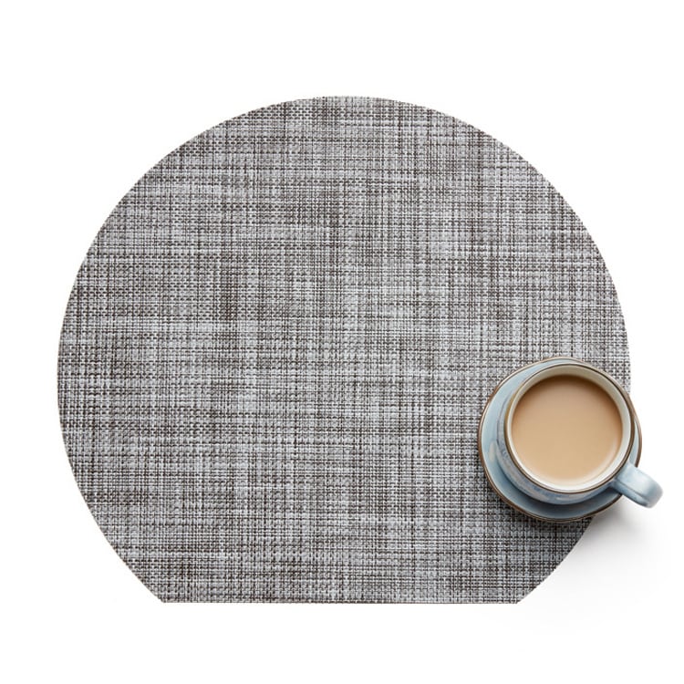 汚れても洗えるメッシュのビニール素材。円形ではなく手前側がカットされているので、折敷代わりとして和のテイストにも合わせていただけます。大きすぎずとても使いやすいサイズです。